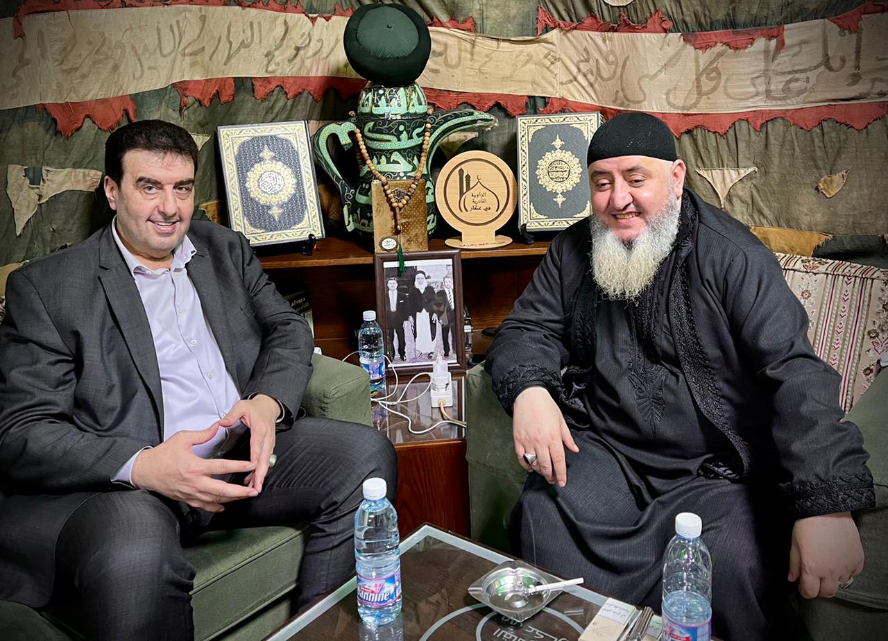 زار النائب وليد البعريني مساء اليوم الزاوية القادرية في عكار وكان في استقباله الشيخ عبداللطيف أحمد بكار زكريا، في زيارة جاءت لتقديم التهنئة للشيخ زكريا بحلول شهر رمضان المبارك.