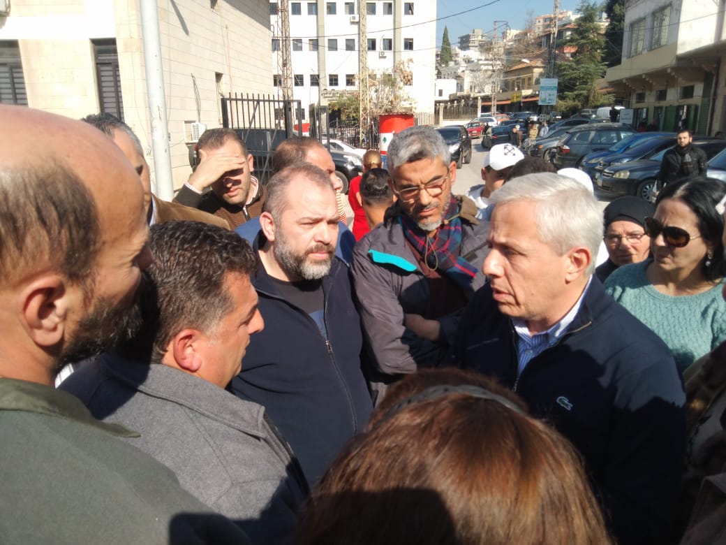 إستمع محافظ عكار عماد اللبكي ورئيس قسم المحافظة لقمان الكردي إلى مطالب الأساتذة المعتصمين صباح اليوم أمام مبنى السراي في حلبا.