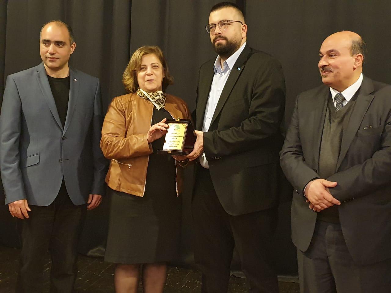 ثم تكريم كل من الدكتورة ديما جمالي والسيدة ناريمان عقاد، السيدة ريما جلول الحسيني، السيدة فاطمة بدرا، السيدة فاديا حسون، الاستاذ وليد جرادة